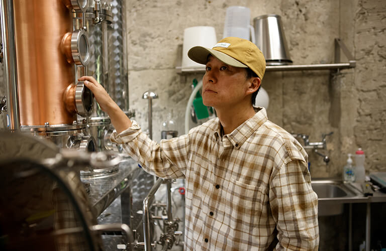 江口さんは蒸留家として、薬草やハーブといった材料から育てて、現在約50種類の蒸留酒を生み出している。彼はそれを「自然と人との間に入っている感じ」だと話す。