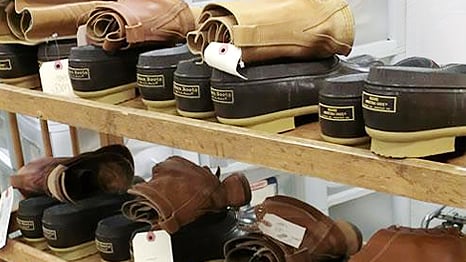 メイン州ブランズウィックにあるL.L.Beanの自社工場には、毎年、リソール(靴底の貼り替え)を求める12,000足以上のビーン・ブーツが届きます。特徴的なゴム製のソールは、何年にもわたって荒野を駆け抜けた結果、どのブーツのものもすり減っていますが、アッパーの革はそれぞれのオーナーの足に完全にフィットするかのように、いい具合にこなれてソフトさを増しています。
