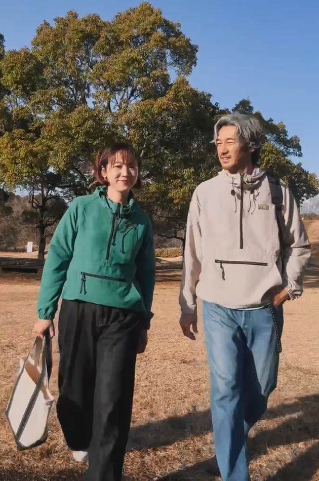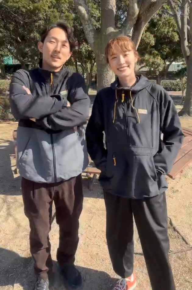 夫婦でエルエルビーンを着て、近くの公園まで自転車で良い運動になりました!