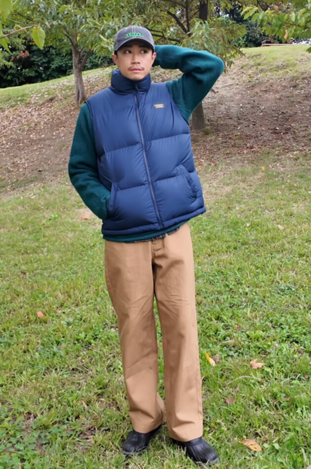 ダウンベストは色味に一目惚れ。着回しできるし、クルマの運転中も快適でマストアイテムかも。